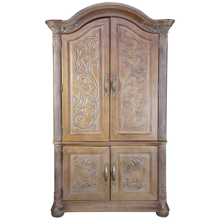 Bernhardt Tuscan Carved Oak Wardrobe Mirrored Armoire Dresser Tv Cabinet At 1stdibs